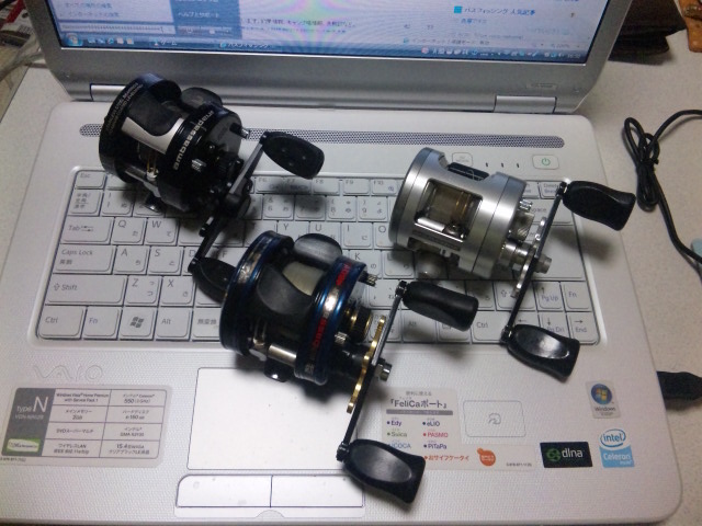 今ではオカッパリだけなので、通常使うリールは3~4台ですが、スピニングも合わせればリールとしての所有台数は20台くらいはありますかねf ^ ^;