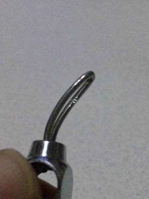 まさかと思いましたが、キャスト時や、リーリングに見ていたら、このキズのあたりにちょうどラインが擦れていましたので、やはり長年ラインが擦れた結果だと思います。