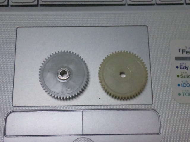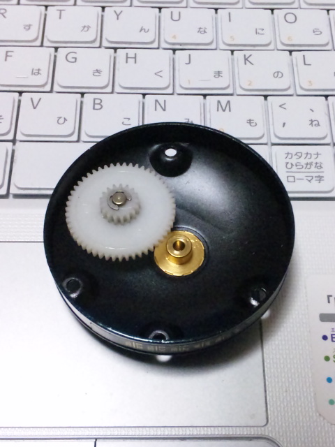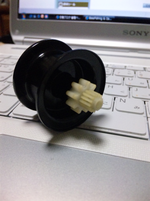 それは、スプールからギヤを介して動いているわけで、このパーツにベアリングを追加する事は、かなりの効果が期待できると考えたわけ。