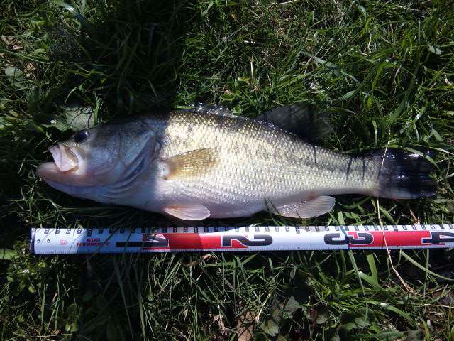 その内、昨年50upを釣った水路前を攻めていた人が30cmくらいのバスをヒット。