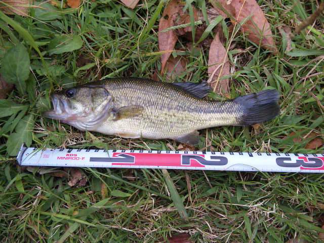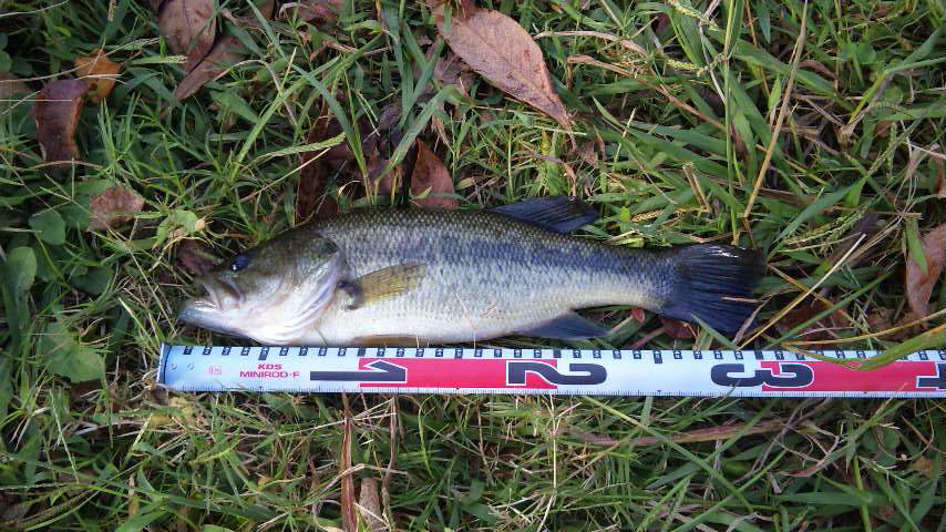 やっと釣れた30cmくらいのバスは、3/16ozのテキサスリグ。